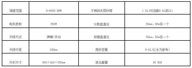 机器并配有多种砂磨盘、分散盘及搅拌叶片。能适应不同的实验需要。